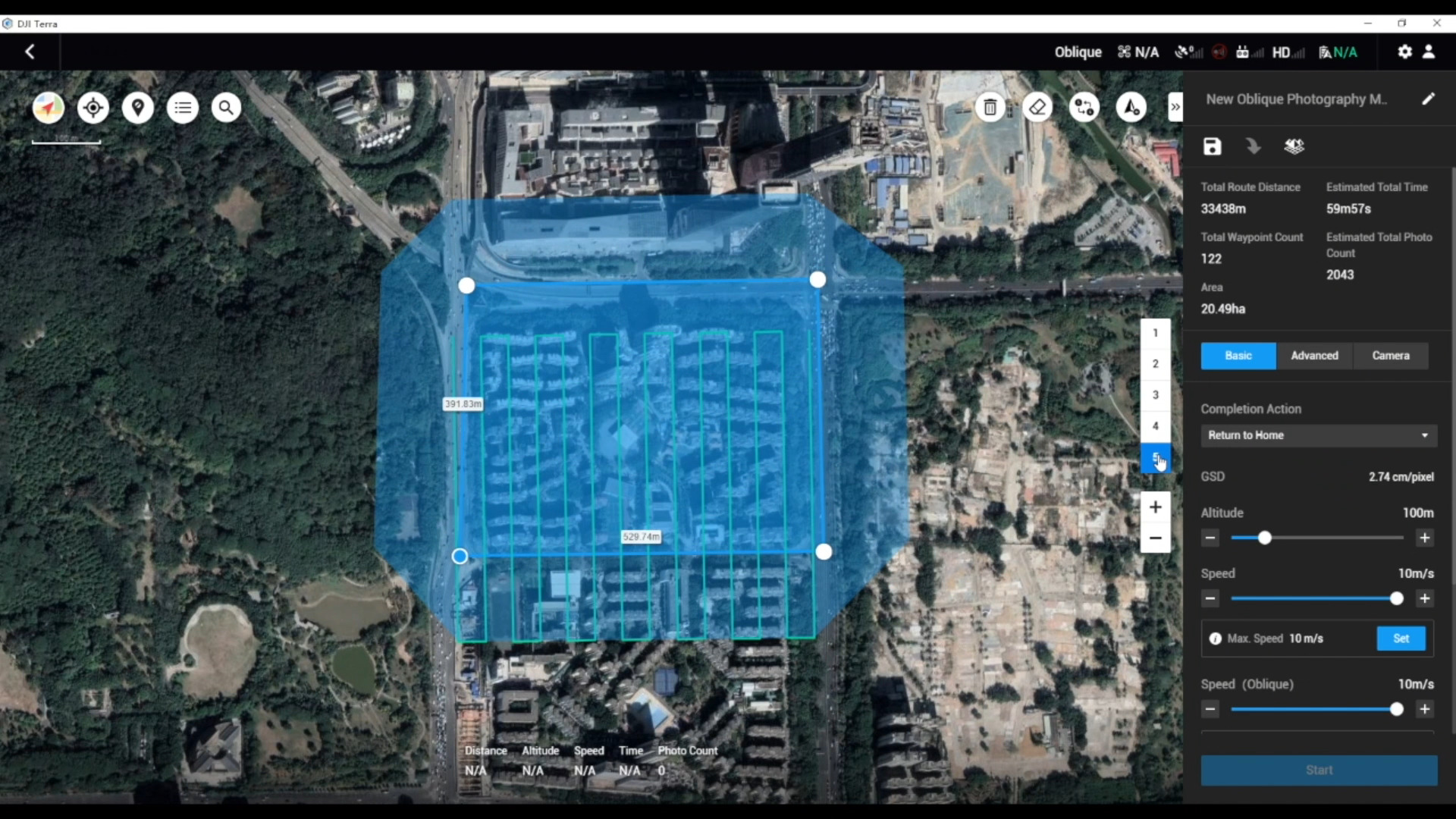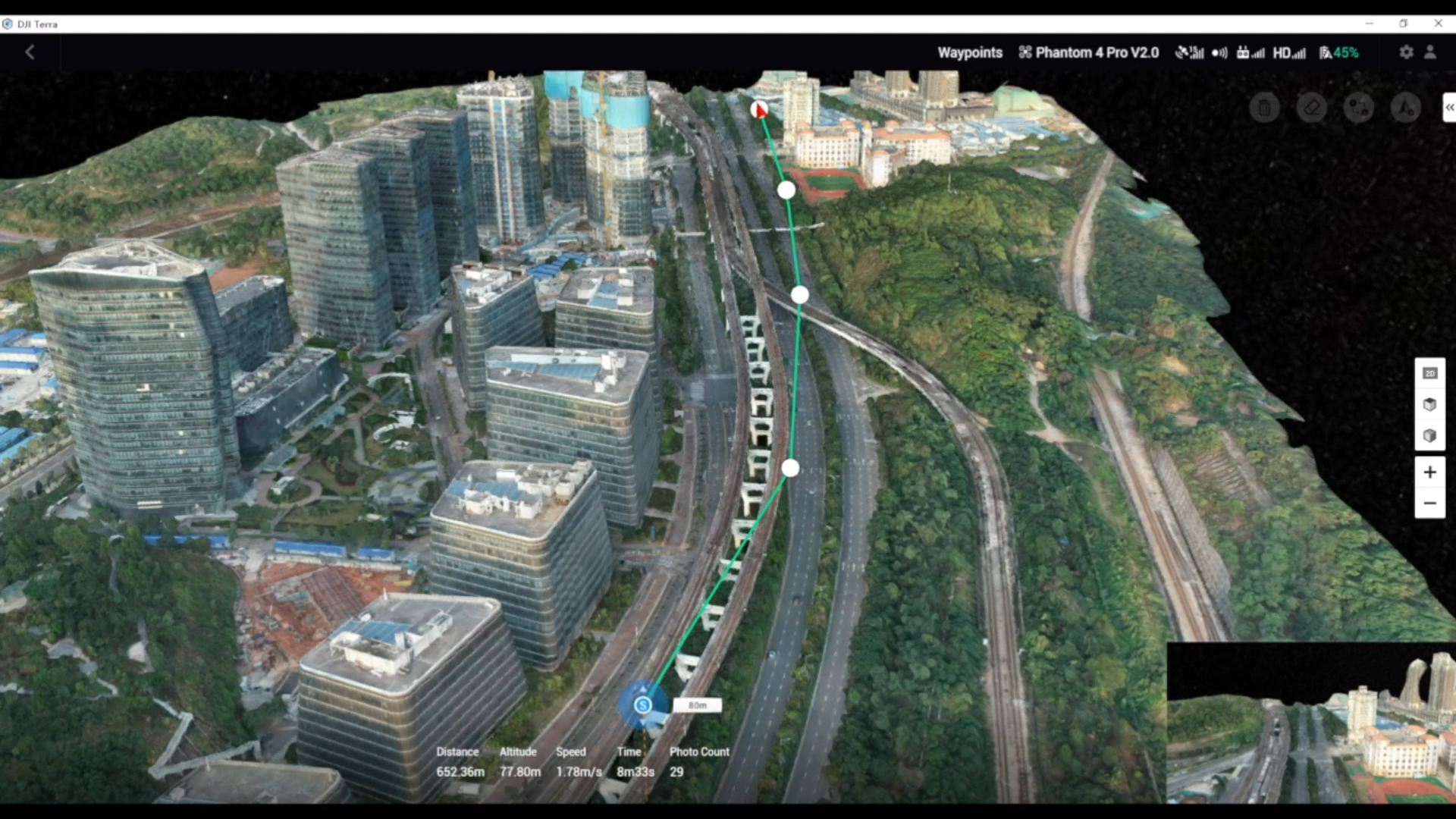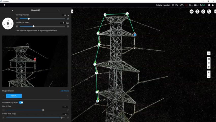 Creati-va trasee de zbor eficiente folosind aceasta metoda impreuna cu parametri ajustabili precum altitudine, viteza, unghi de inclinare a gimbalului, directia de parcurs a Dronei si multe altele. Pentru misiuni mai complexe si mai stricte care necesita o atentie deosebita la detalii, utilizați 3D Flight Visualization pentru a proiecta și simula operatiuni pe modelele 3D deja existente.