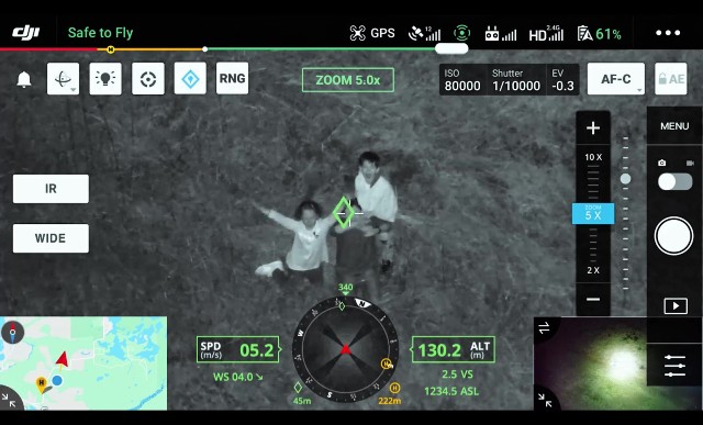 Identificați și urmăriți subiecții în mișcare, cum ar fi oameni, vehicule și bărci, cu funcția Smart Track, unde se aplică zoom-ul automat pentru urmărire și vizualizare constantă. Locația dinamică a subiectului este dobândită și partajată în mod continuu cu o altă telecomandă sau către DJI FlightHub9.